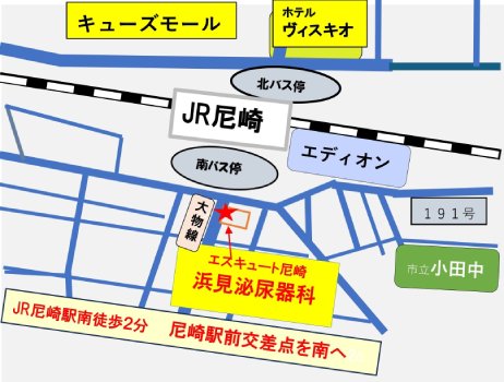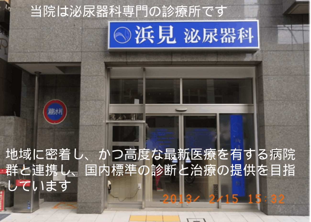 浜見泌尿器科 〒660-0803 尼崎市長洲本通1−3−21 エス・キュート尼崎1F Tel. 06-6480-5737 Fax. 06-6480-5738